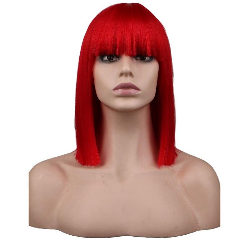 พบกับQQXCAIW Short Straight Cosplay Wigs Women High Temperature Fiber Synthetic Flat Bangs Red Wig For Halloween YFD Storeราคาถูก เก็บเงินปลายทาง