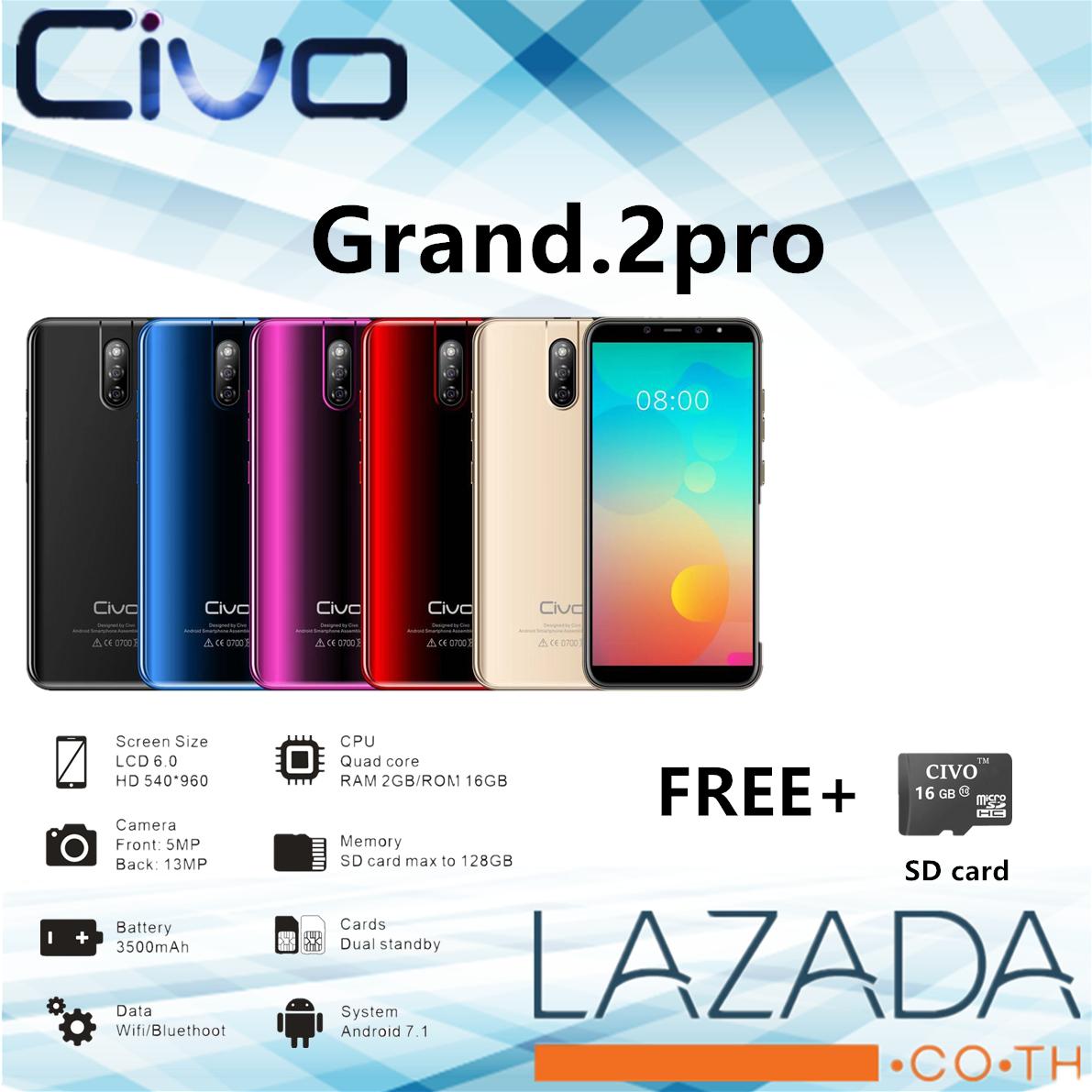 มีแถมSD CARD!!!CIVO Grand.2pro รุ่นใหม่(ฝาหลังไล่สีสวย)โทรศัพท์ RAM 2 GB + ROM 16 GB มีรับประกันศูนย์ 1 ปี จะถูกส่งมาถึงบ้านคุณ